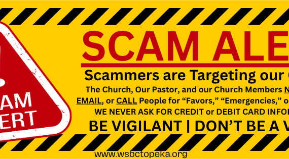 🚨 SCAM ALERT! 🚨 The Church and I do NOT email, text, call, or ask for “favors.” We NEVER ask for GIFT CARDS!Always Call the Church Office at (785) 233-4241 to Verify. If in doubt, Do Not Do It, it’s a SCAM! Dear WSBC Family, I received calls and texts […]